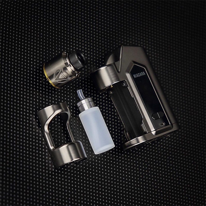 Nikola Niagara 200w squonk mod is equipped with a 6ml bottom-feeding food grade silicon bottle. Its regulated 7-200w mod outputs stably. Its dual 18650s batteries last longer and are easy to change. The powerful design language embodies its masculine style to the best of its ability.