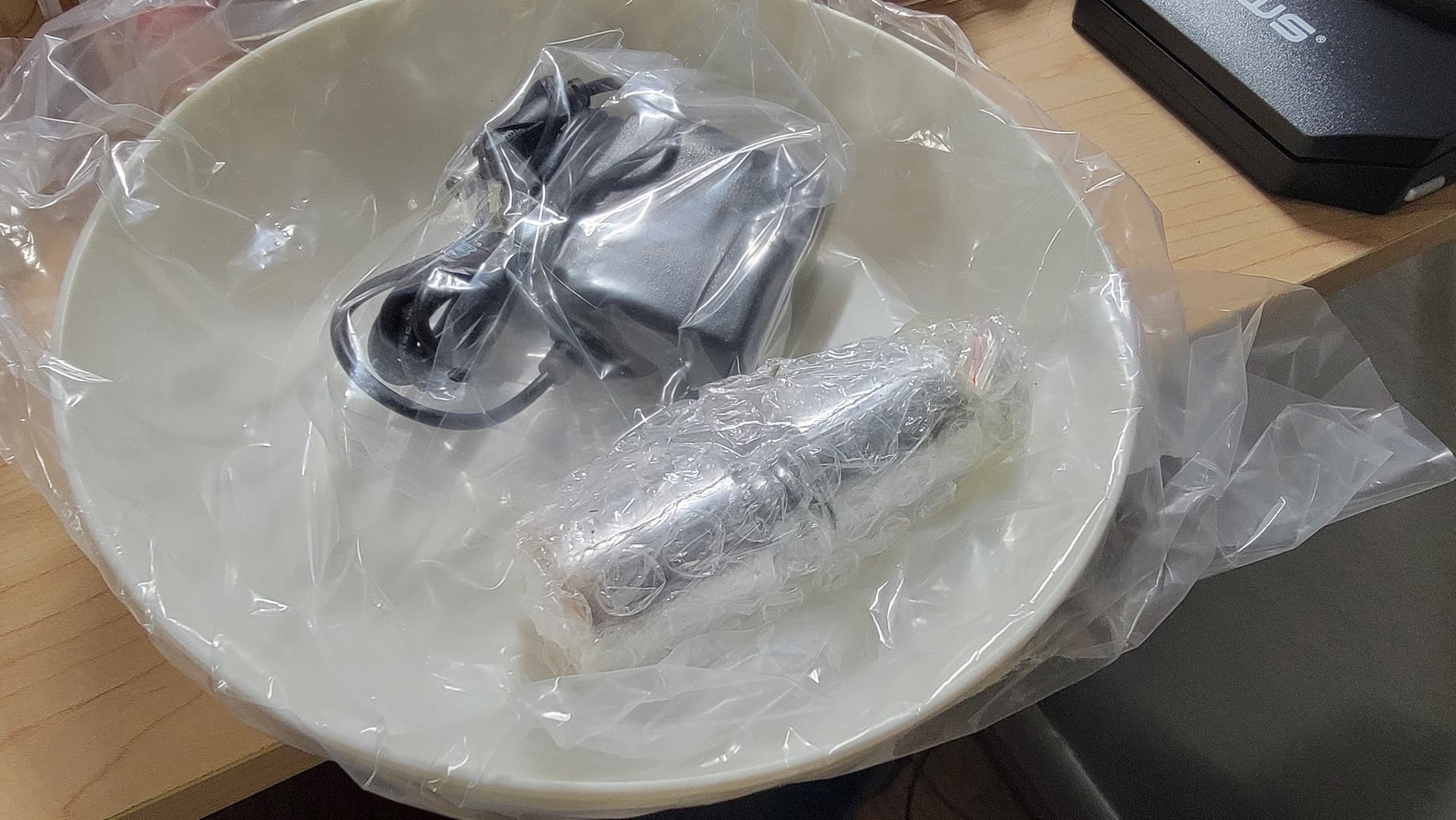 Bowl (I throw mine out), transformer, and (2) CA weights …