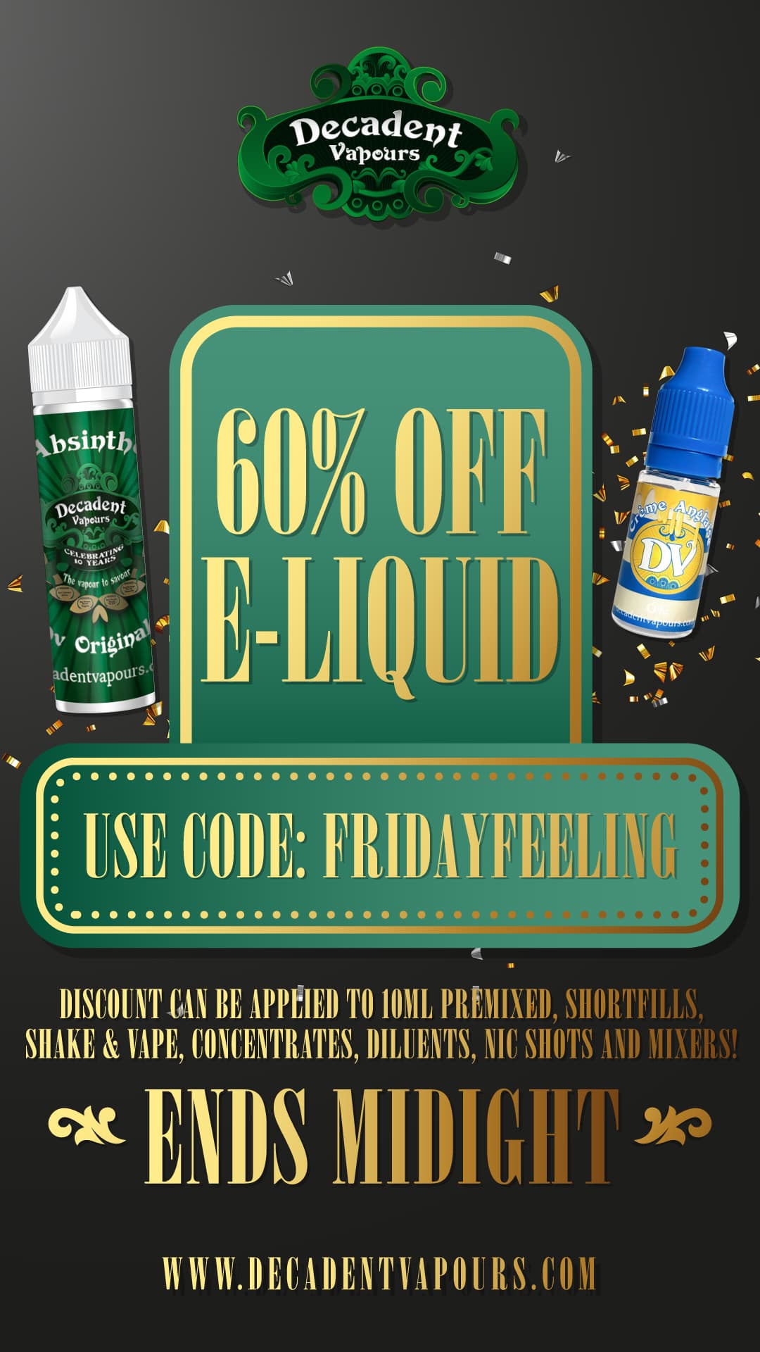 60% OFF E-LIQUID WITH CODE: FRIDAYFEELING