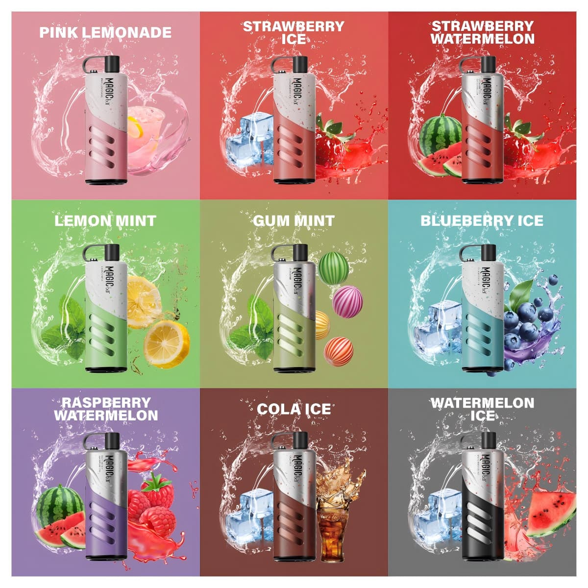 Cola Ice: The classic, sugary, and slightly caramel-like taste of soda pop, finished with a blast of ice for a refreshing fizzy feel.