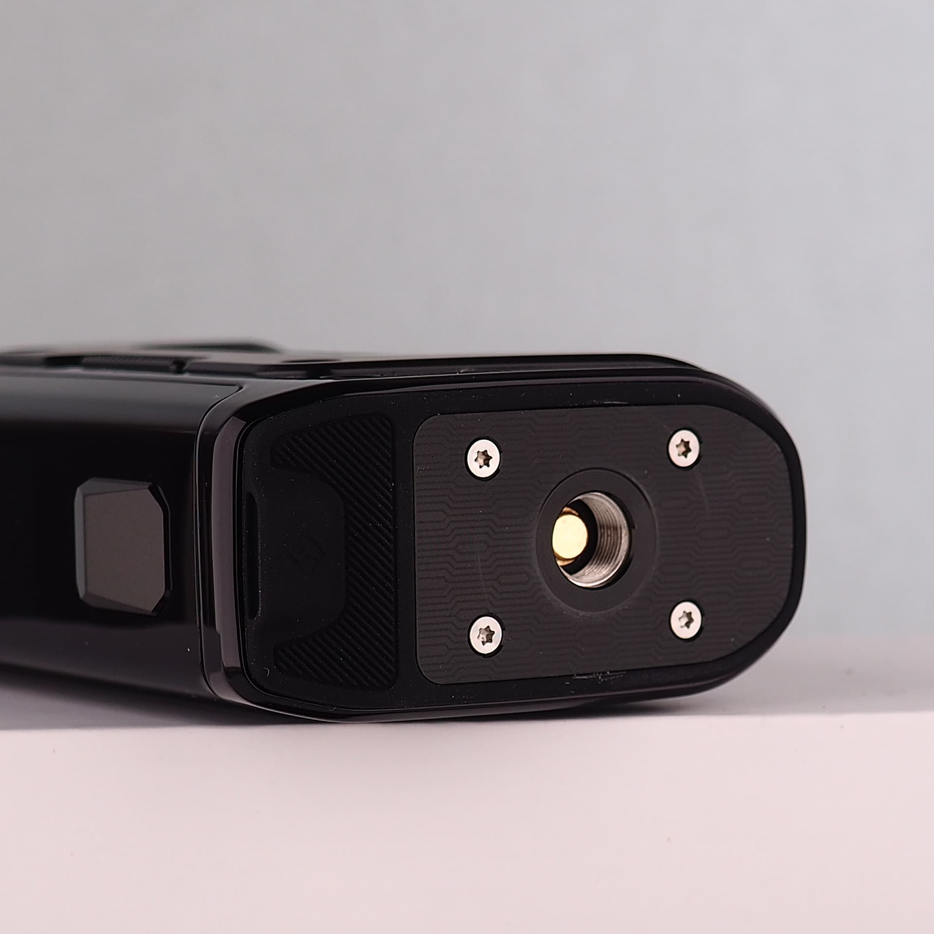 Up top, the Aegis Legend 5 features a well-secured 510 plate that keeps tanks and atomizers sitting flush and stable.