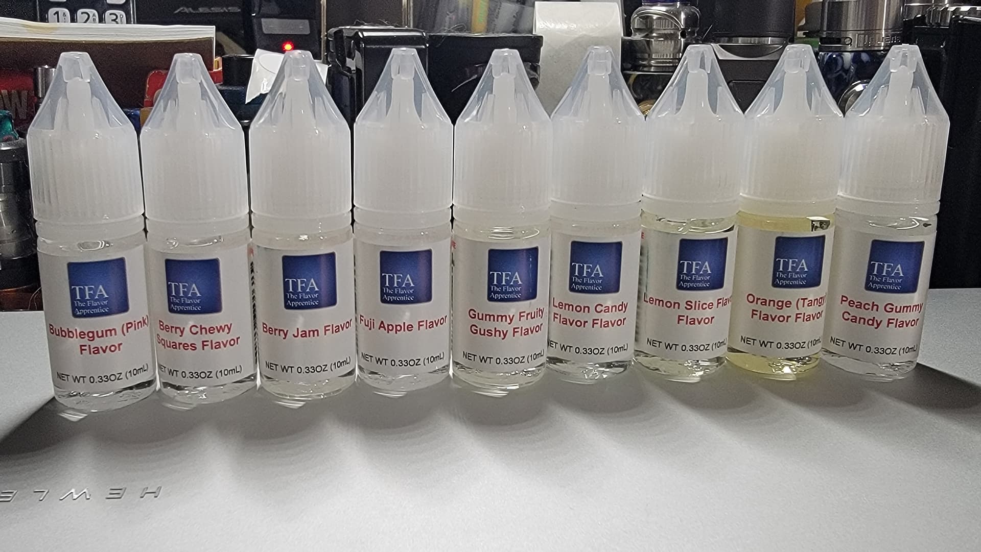 Watermelon Sour Candy (Stevia) (TPA) 4.5% (10-26-25) – Not wanting to do two Strawberries back to back, I broke them up with this one. Having used a lot of Stevia, but only for fruits, I was interested to see how that fared here, in a sour candy flavor. Overall, fairly well. It was, well, a watermelon sour candy LOL. It wasn’t the strongest flavor, and at 4.5% it tasted lower on the strength scale, around a 5.5/10. Unsure if increasing it would help or not. The watermelon was as expected candied, and artificial, and somewhat sour. Sweetness on the initial onrush felt higher, but on the finish, it seemed to drop off, and at the finish it actually tasted a few clicks below mid-level sweet. It did feel/taste a bit muted, and possibly due to the sour.