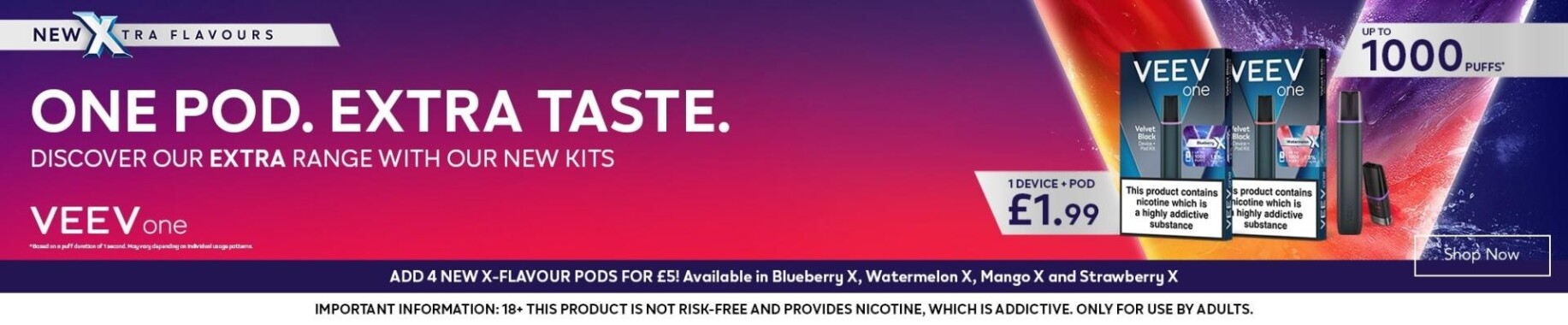Plus, the VEEV One X single pack pods are available separately in 4 flavours. Get yours for 6 for £10, and try out a range of options.