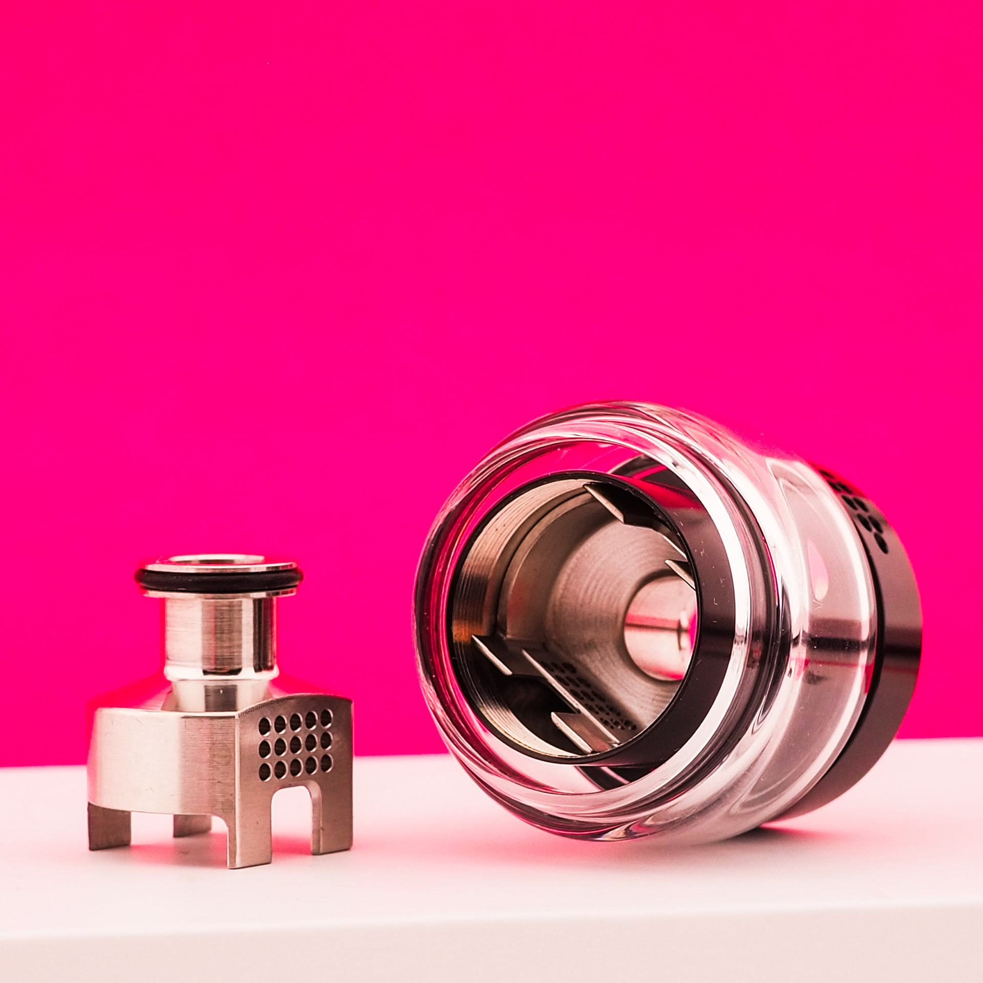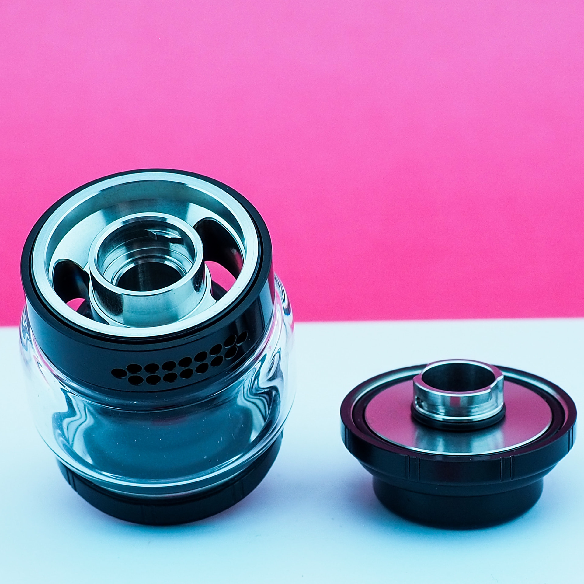 The inner chamber sections are easy to remove, allowing users to switch between single- and dual-coil configurations with ease. The fitted o-ring is a clever design as this holds them in place when the top section is removed, preventing them from falling out.