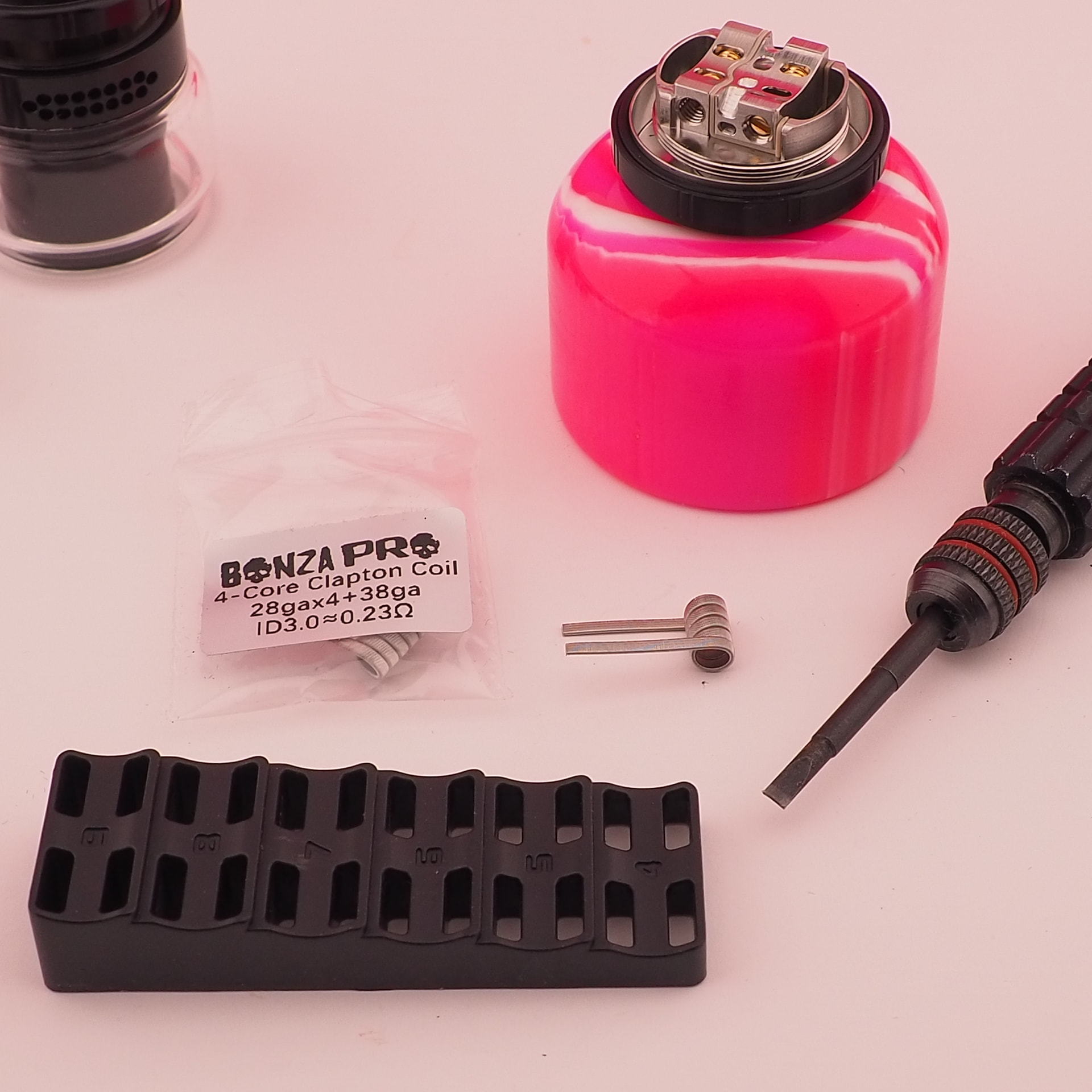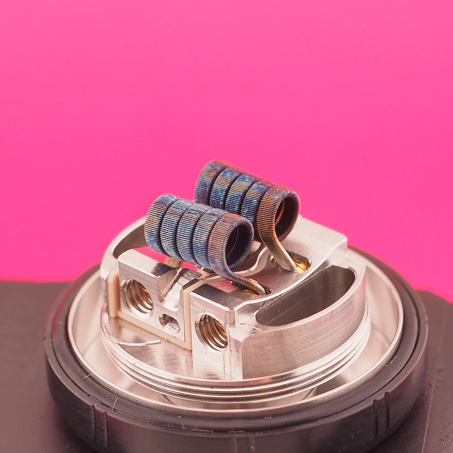 No additional coils included in the package, so I reached for a 3.5 mm fused clapton as this deck is more than capable of handling a large coil like this.