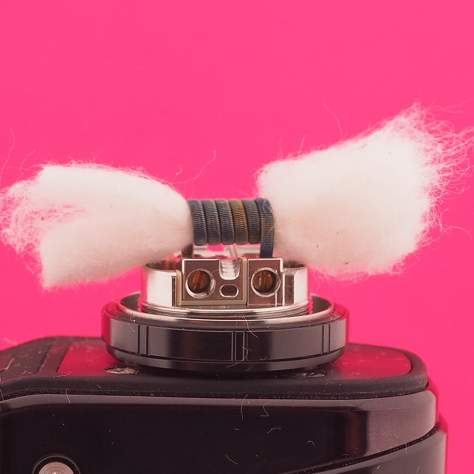 The Bonza Pro’s three-directional airflow hit’s the coils from multiple angles, creating even airflow distribution and smoother draws. Paired with the dual-coil chamber insert, it helps concentrate flavour while still allowing plenty of airflow for dense vapour production. The result is a well-balanced vape that delivers strong flavour without sacrificing cloud output. I pushed this build to 120 Watts, and it kept up easily when chain vaping, a tribute to its enlarged wicking wells that will work well with more exotic build installs.