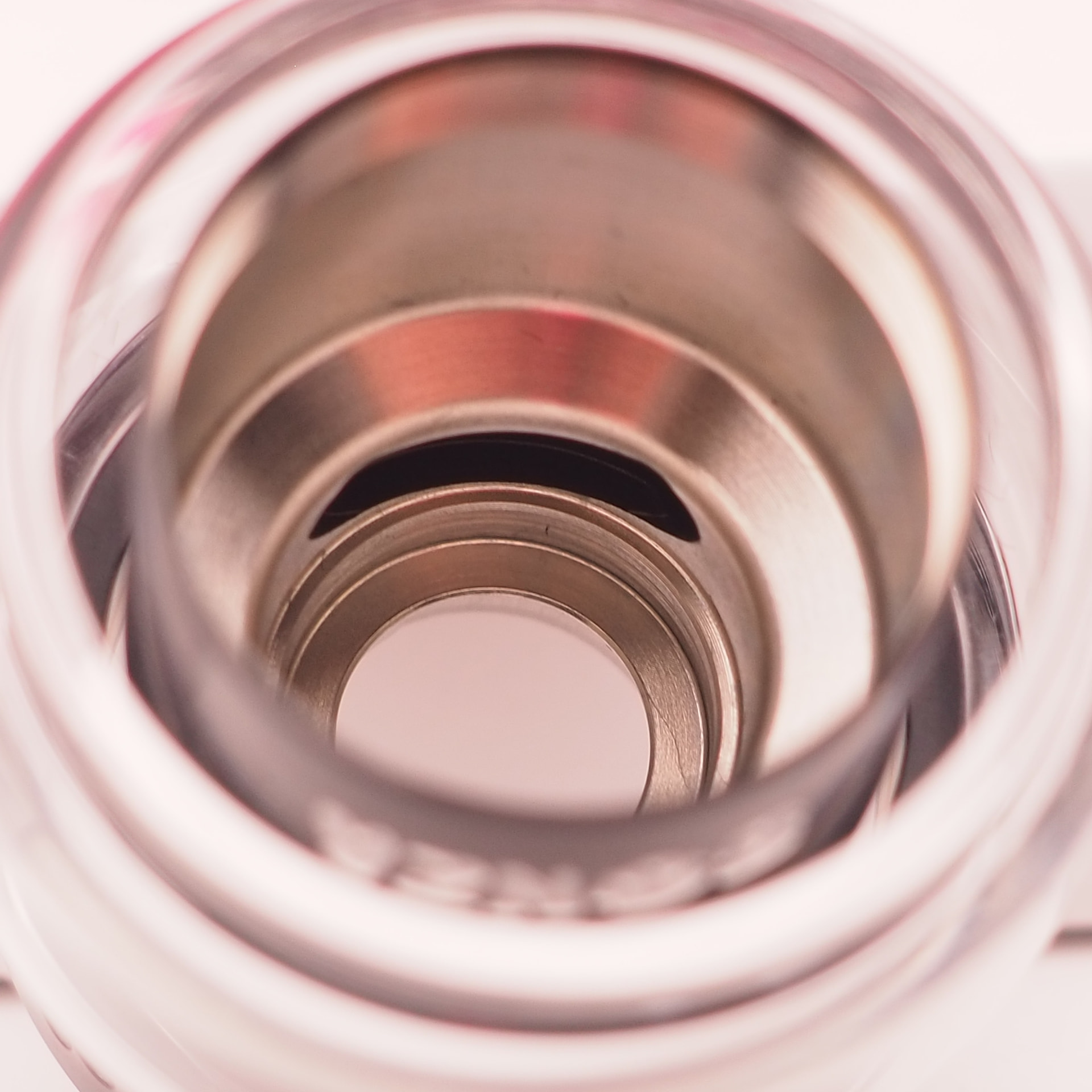 The top section keeps a straightforward, A comfortable 810 drip tip housed tightly in the top cap. Airflow control is smoothly integrated into the body, maintaining a cohesive look rather than breaking up the lines of the tank.