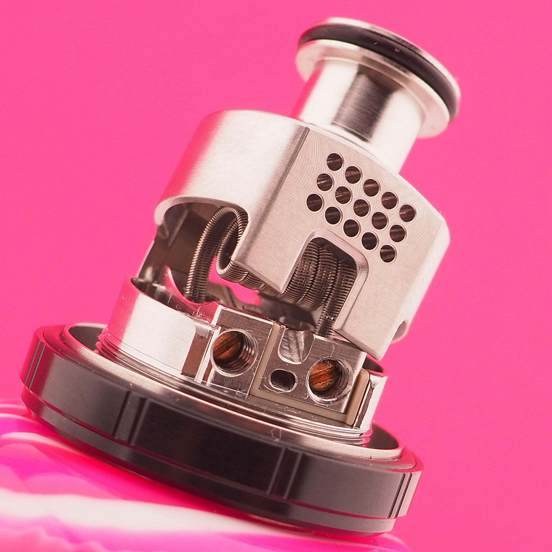 With a 12 mm deck diameter and large post holes, there’s ample space to accommodate bulky or exotic coil builds without feeling cramped.