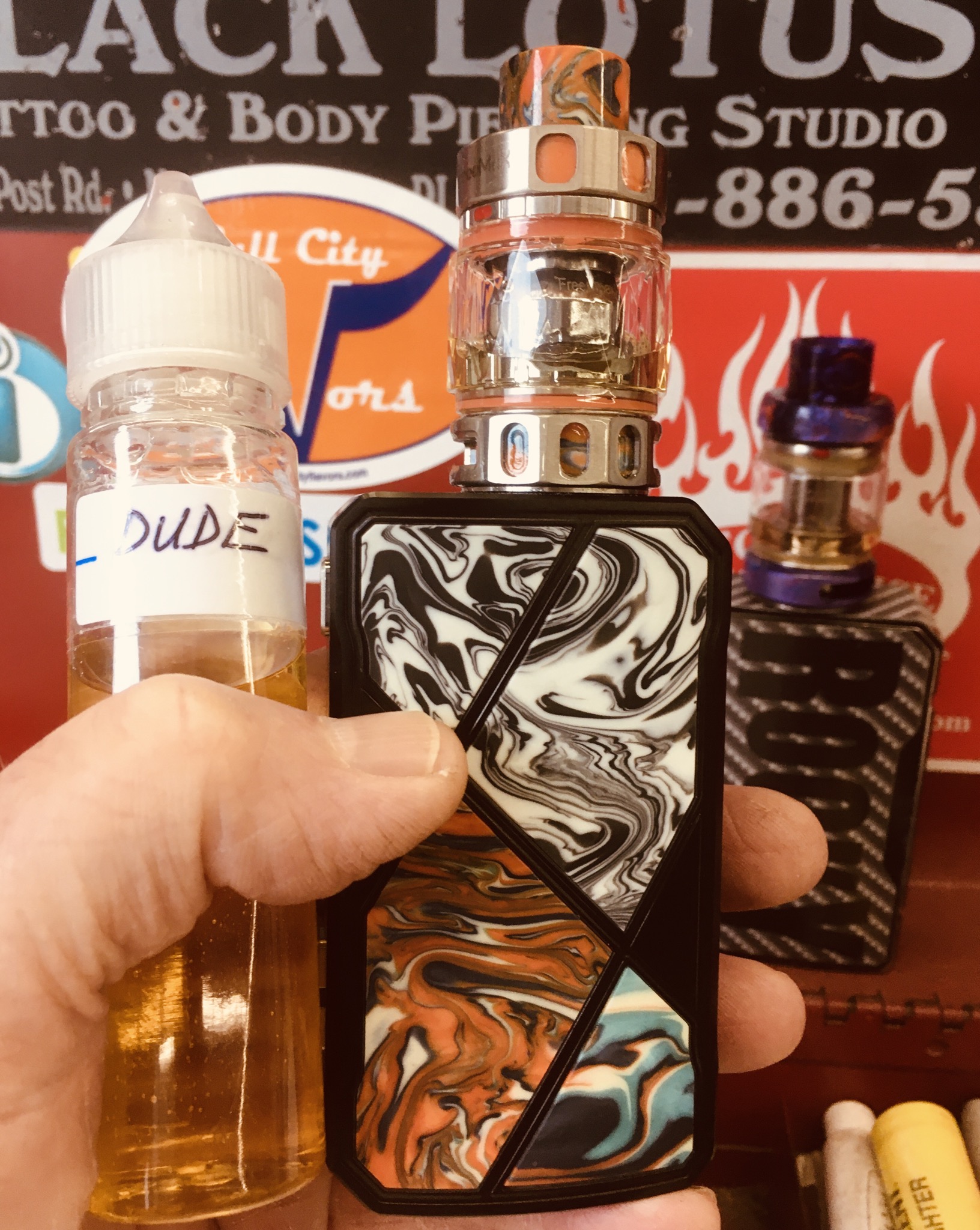 I had this Orange tank on the Ladon vaping one of my new bubblegum mixes but that Ladon hits like a dead dog, I’m really starting to hate it, so I through it on the Centaurus and Boom, back in business ![]()