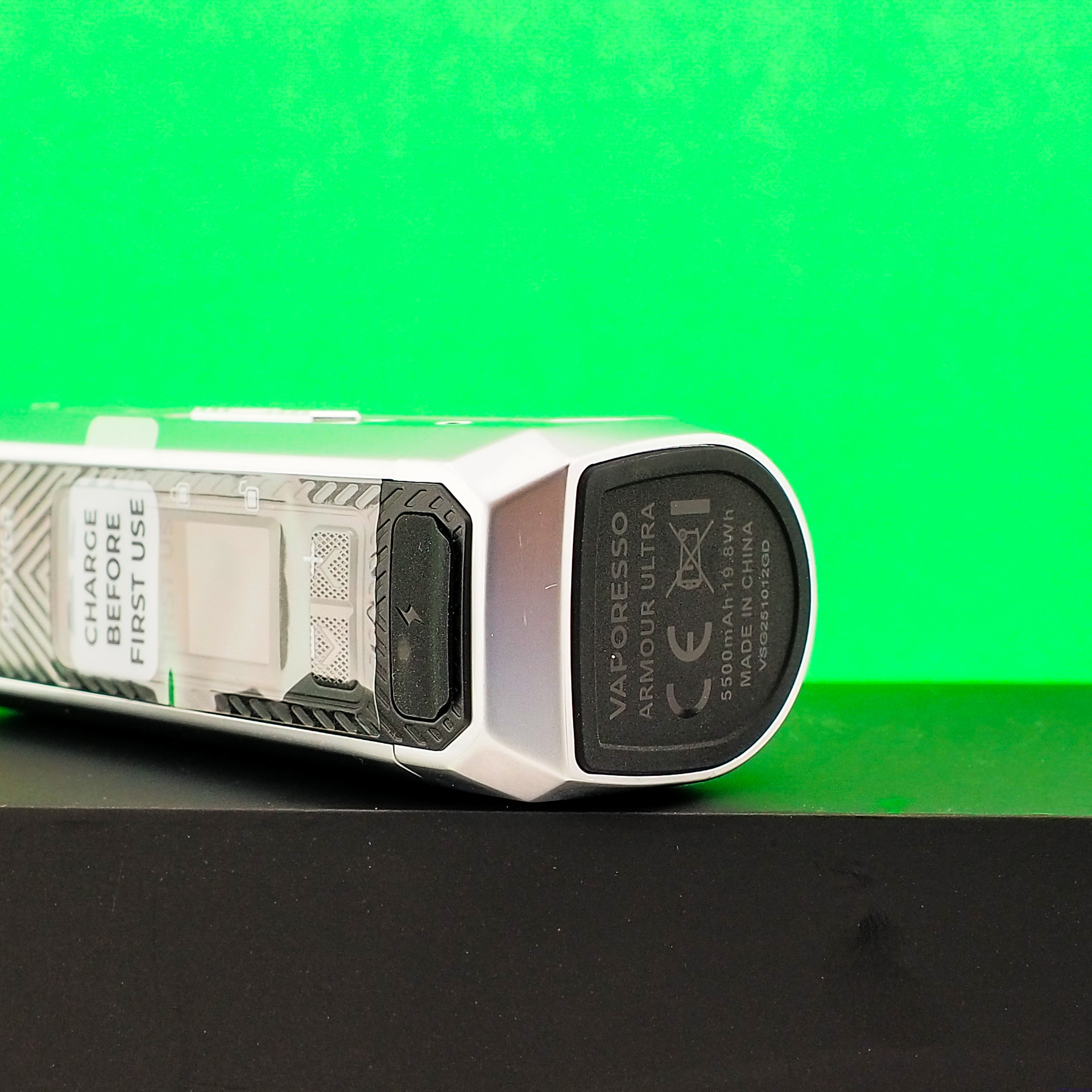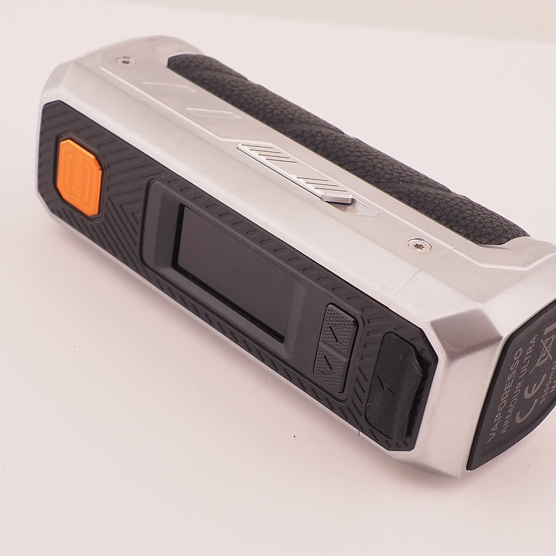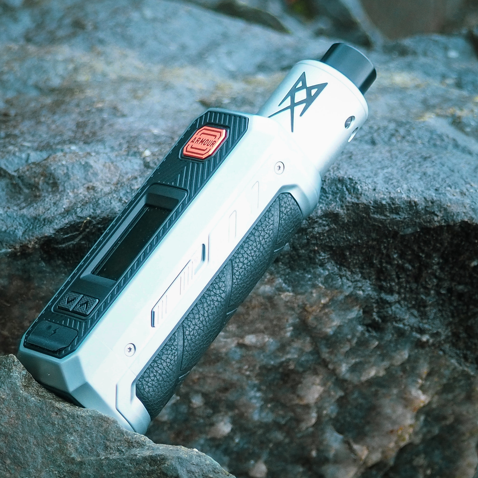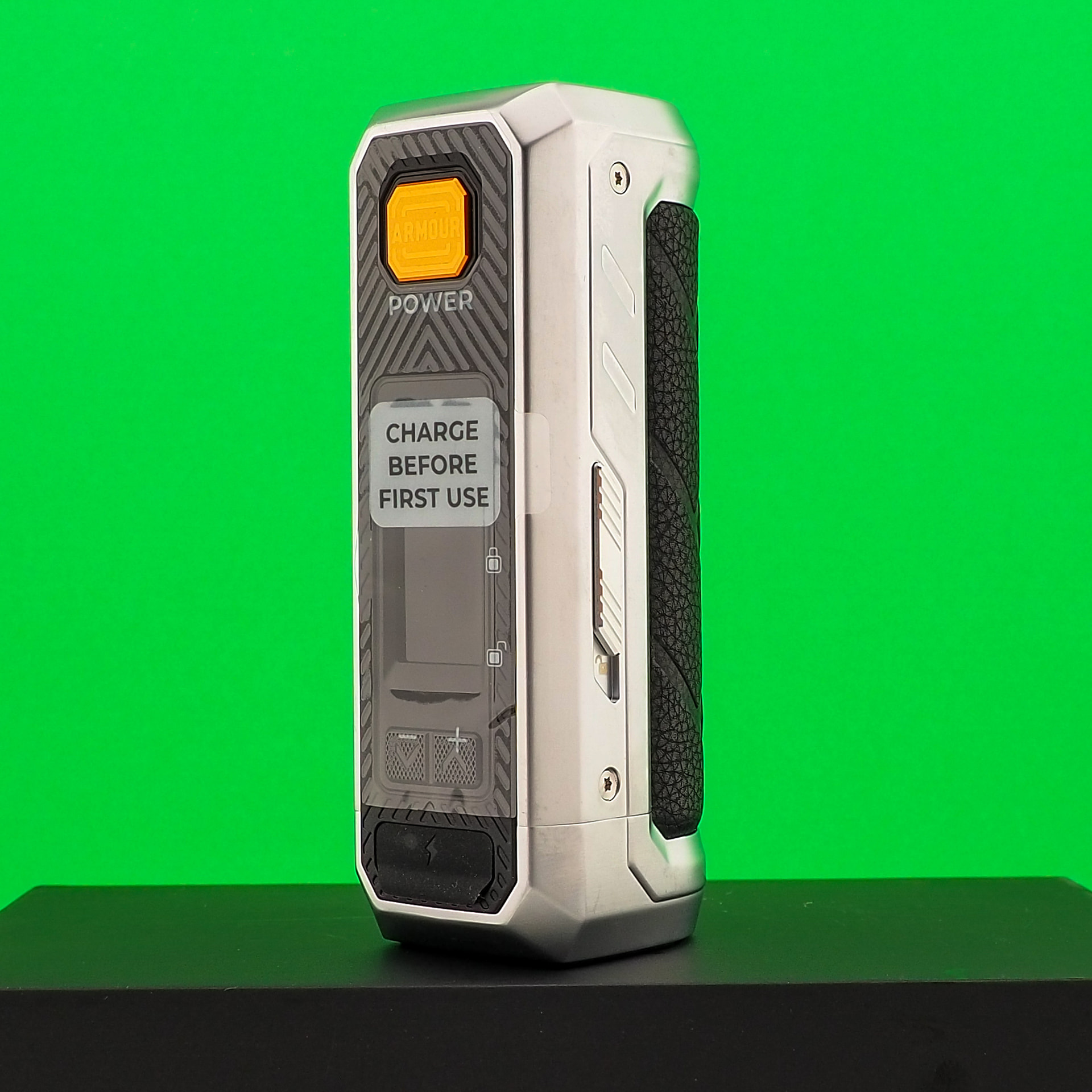 The Vaporesso Armour Ultra Mod presents a robust, ergonomically-minded design that clearly prioritises comfort and durability. Its form factor is crafted to fit naturally in the hand, with contoured edges that provide excellent grip.