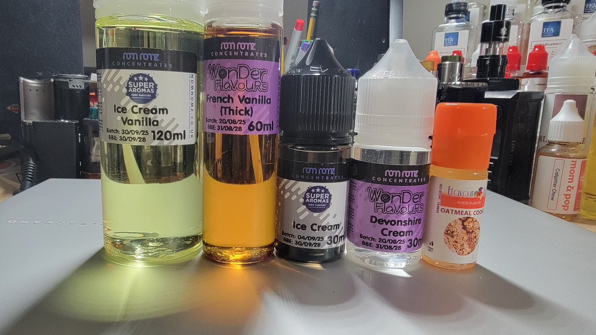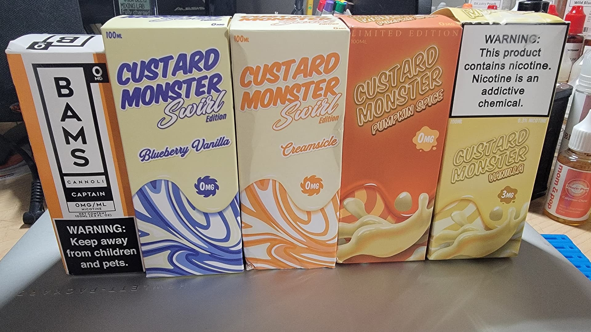 Brian, it ALL started when I saw the Pumpkin Spice, and I knew what flavors I would use, but wanted to see if I could figure out what they used. I’m def. getting TPA Pumpkin Spice from it, VC, maybe some French Vanilla, Dairy Milk, and Sweet Cream. It’s not terrible, but not great, as the TPA Pumpkin Spice has some fairly predominant “dank” or "earthy notes to it. Would have been SOOOO much better with some FLV, or even some APEX/Sterling Cloud. Of course, due to my (you know), ongoing Captain Crunch addiction, I had to add the Bams Cannoli Captain. The “Swirls” were a curiosity. I have the recipe for their Butterscotch Custard, but wanted to see how different the “Vanilla” was from it. You go in looking for one, and before you know it …