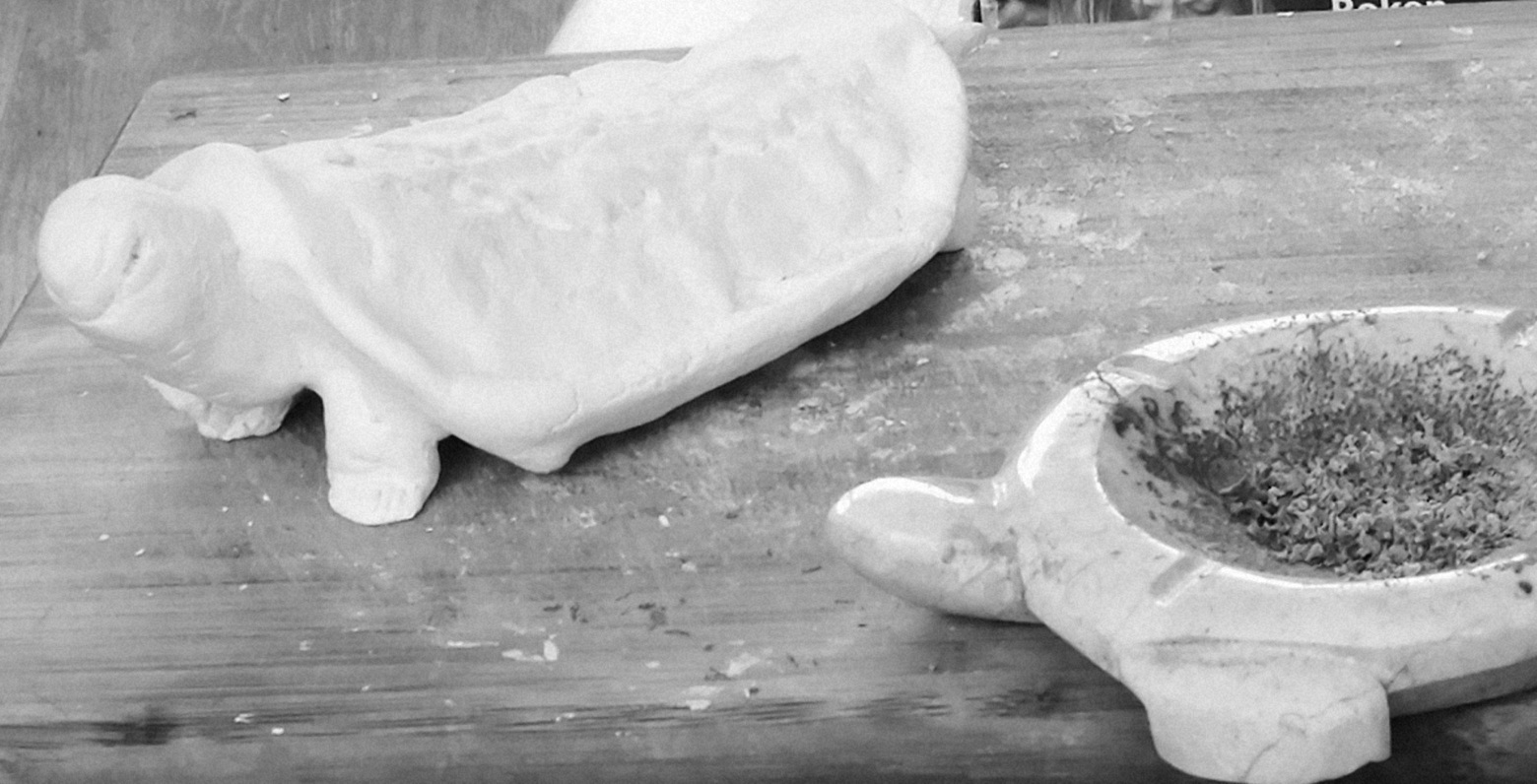 I found a piece of bark last year that reminded me of a turtle. The wood holding it together was pretty rotten, so I scraped it away and made a clay paste to keep it all together.